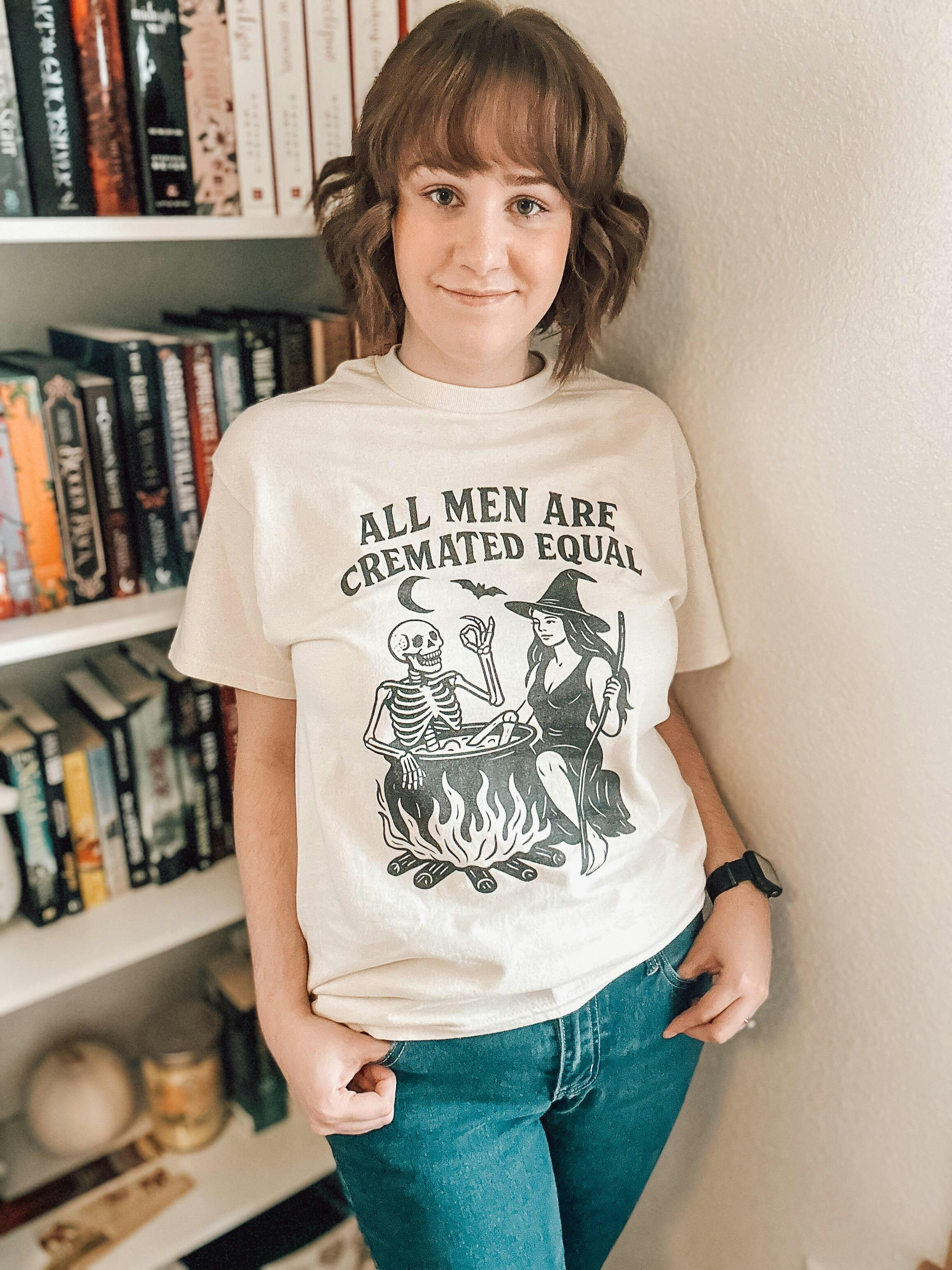 Introducing the perfect Unisex Heavy Cotton Tee for those who love to express themselves through witty & bold shirts! This shirt beautifully blends comfort with a touch of edgy humor. Ideal for anytime you want to wear this- whether you’re heading to a Halloween party, a laid-back gathering with friends, or just enjoying a cozy day at home. Wear it and remind the world that in the end, we all go up in smoke.