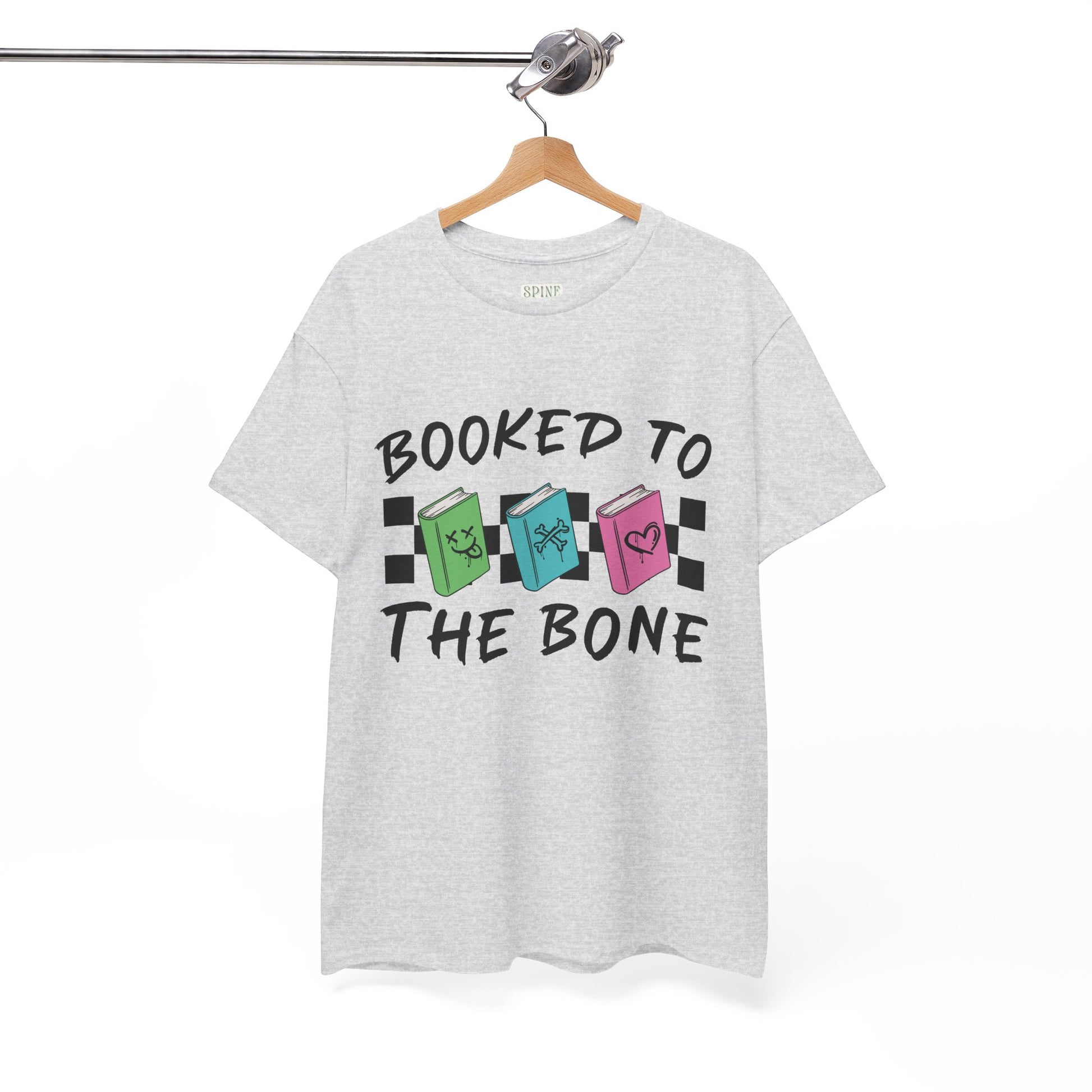 Booked to the Bone: too many books to read and so little time. It's a great choice for book lovers, friends, or family members celebrating their passion for reading. Perfect for holidays like World Book Day or cozy gatherings, this tee can easily be given as a gift or worn during celebrations with like-minded individuals.
