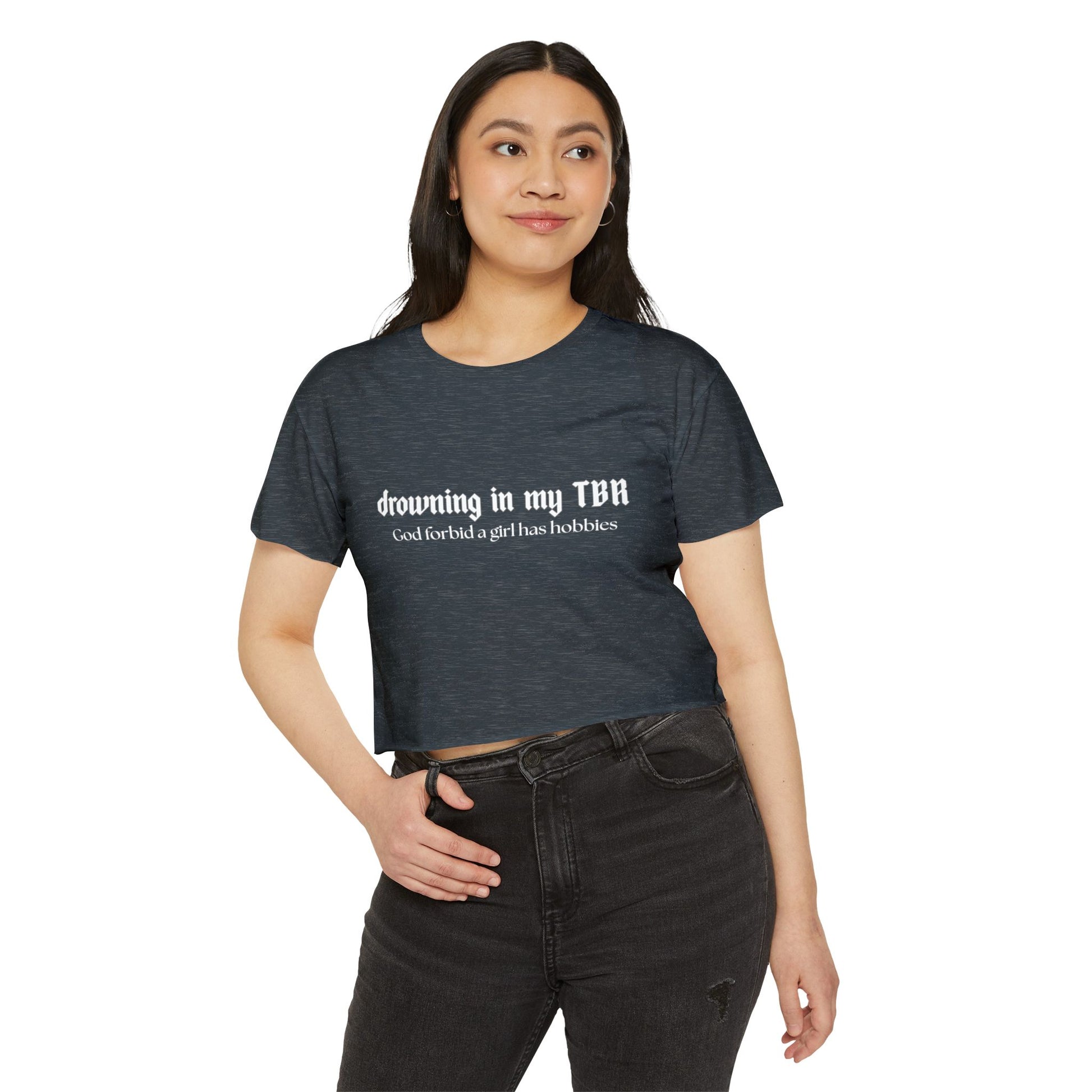 Introducing our comfy TBR Cotton Crop Top, a perfect blend of style and comfort for everyday wear. Designed for book lovers and hobbyists alike, this tee brings a playful, relaxed vibe to any casual outfit. Whether you're cozying up with a book or out with friends, this shirt elevates your look effortlessly. It’s great for gifting during special occasions like birthdays, holidays, or just because you want to treat yourself! Perfect for anyone who enjoys a good laugh and values comfort in fashion - a girl's gotta have hobbies.