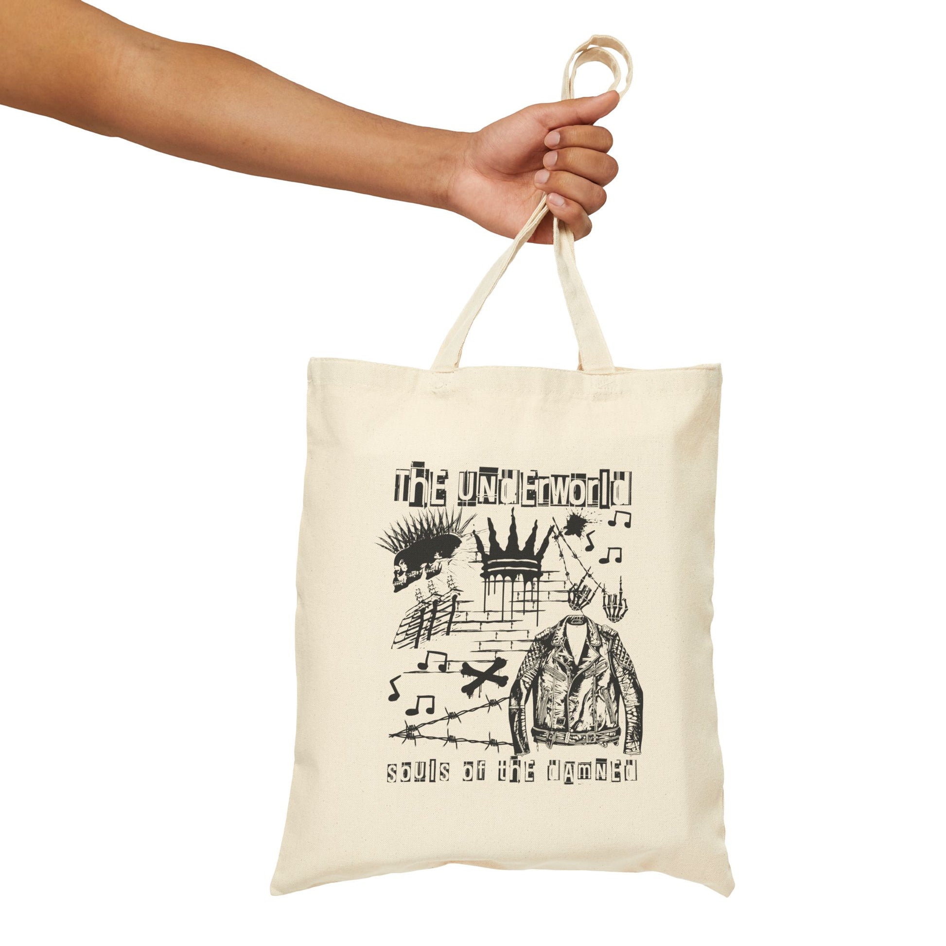 The Underworld Souls Tote features a rock and roll design, perfect for those who love edgier designs and musc. This tote is great for a quick shopping trip, a book convention or just everyday use, and is especially perfect for book lovers who enjoy fantasy/romantasy reads. This tote has designs on both sides.